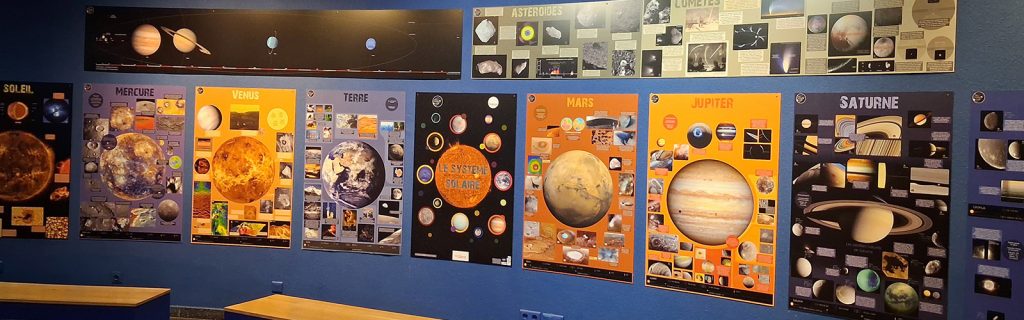 Aujourd’hui ce sont les objets du système solaire qui vous sont présentés et notamment les planètes avec des panneaux d’exposition et des maquettes.